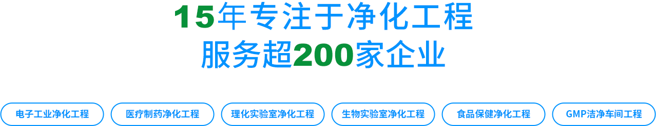 15年專(zhuān)注于:電子工業(yè)廠(chǎng)房、生物制藥、理化實(shí)驗(yàn)室、生物實(shí)驗(yàn)室、GMP車(chē)間、醫(yī)院手術(shù)室、、醫(yī)療器械車(chē)間、動(dòng)物房、食品加工車(chē)間、化妝品車(chē)間等諸多凈化行業(yè)領(lǐng)域。立志為凈化行業(yè)前沿技術(shù)引領(lǐng)。